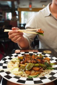 as soon as = after something happens; immediately after Nguyen started to eat his food as soon as it was served to him.