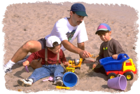 Example: There is a man with his sons.
