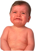 He’s not used to being without his mother. That’s why he’s crying. To make “be used to” negative, add “not” to the verb “be.” | ![]() |