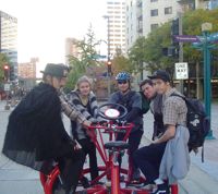 Complete each sentence or question in the present perfect tense. 12. A: ________ he ever ________ on a conference bike? (ride) 13. B: No, ________ ________. 14. His friends ________ never ________ on a conference bike either. (be) | ![]() |